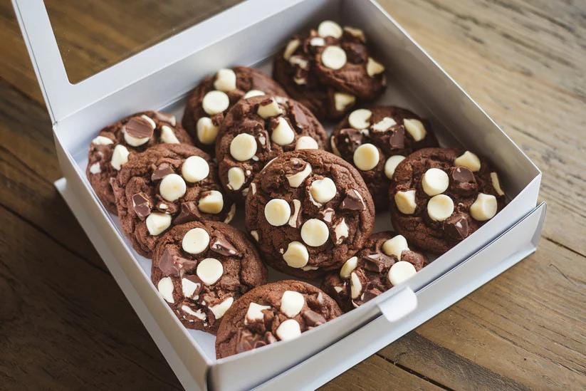 Satisfy your deepest chocolate cravings with our Double Chocolate Cookies. These decadent treats feature a rich cocoa dough packed with both semi-sweet and milk chocolate chips, giving you the perfect balance of dark and creamy chocolate in every bite. Soft, chewy, and irresistibly rich, these cookies are perfect for chocolate lovers who want the ultimate indulgence.