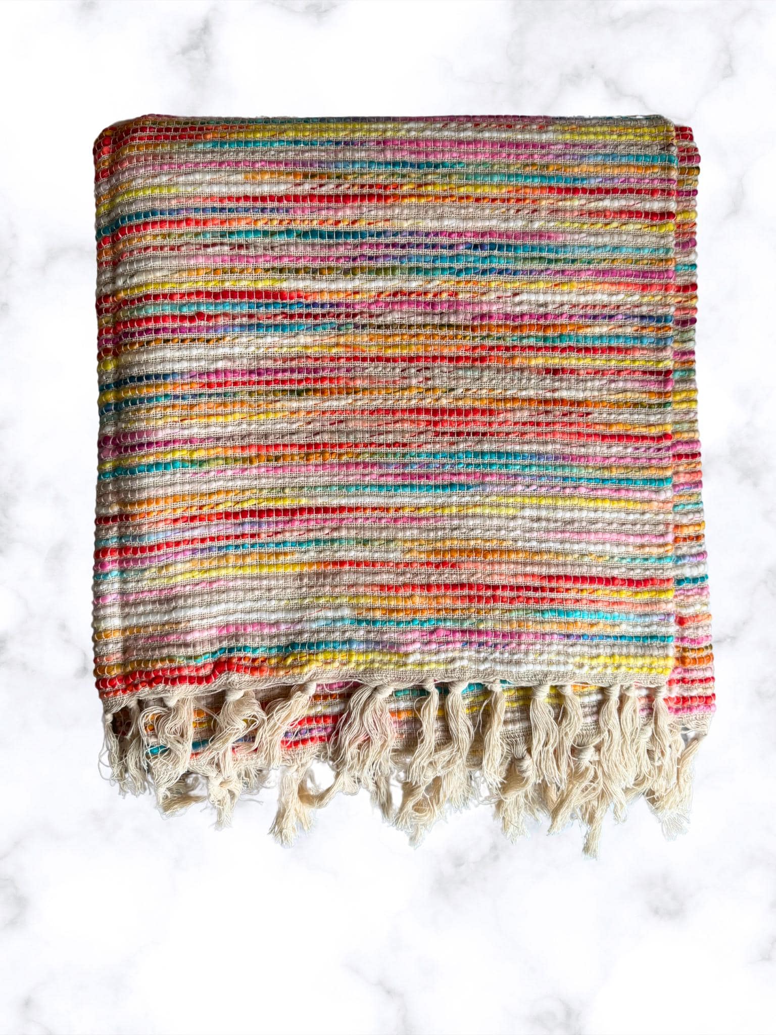 Bohemian Handcrafted Cotton Throw – Multicoloured (60” x 50”)