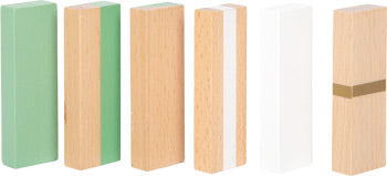 A timeless classic reimagined in modern style. This Gold Edition tumbling tower features solid wooden blocks in elegant pastel tones, crisp white, natural wood and refined gold accents — making it as beautiful on display as it is fun to play.