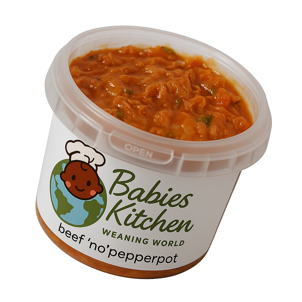 Our Stage 3 Fresh Beef “No Pepper Pot” is a baby-friendly twist on a Caribbean classic — rich, hearty, and full of homestyle flavour, but made without pepper, chilli or heat, making it perfect for babies aged 10–12+ months.